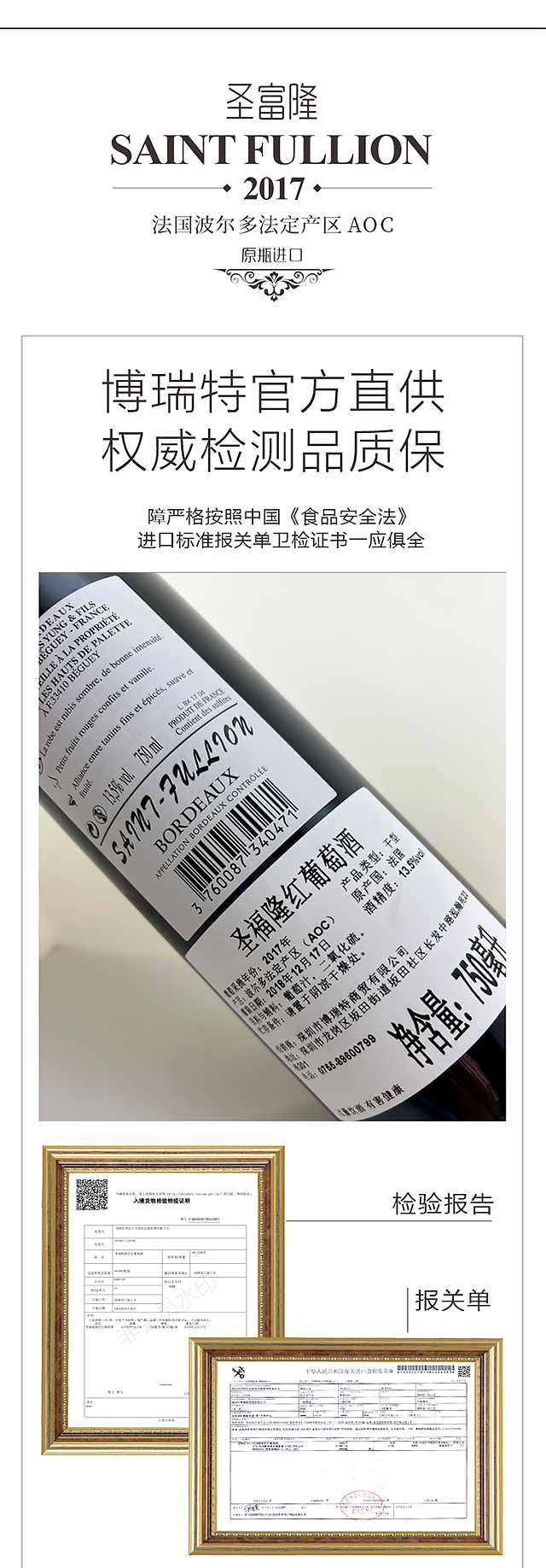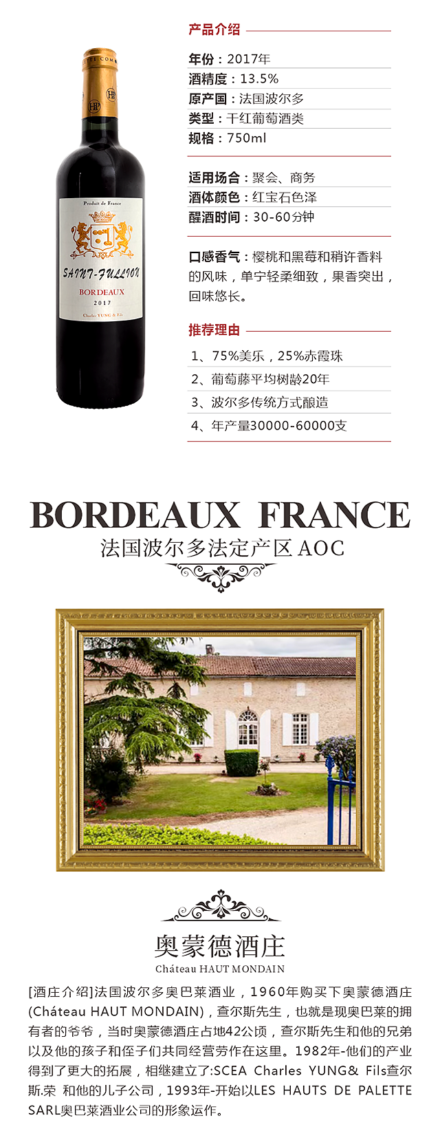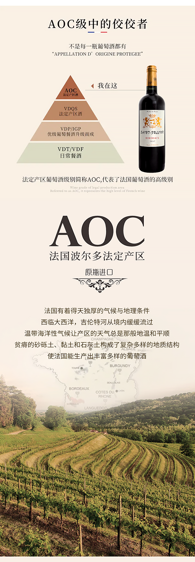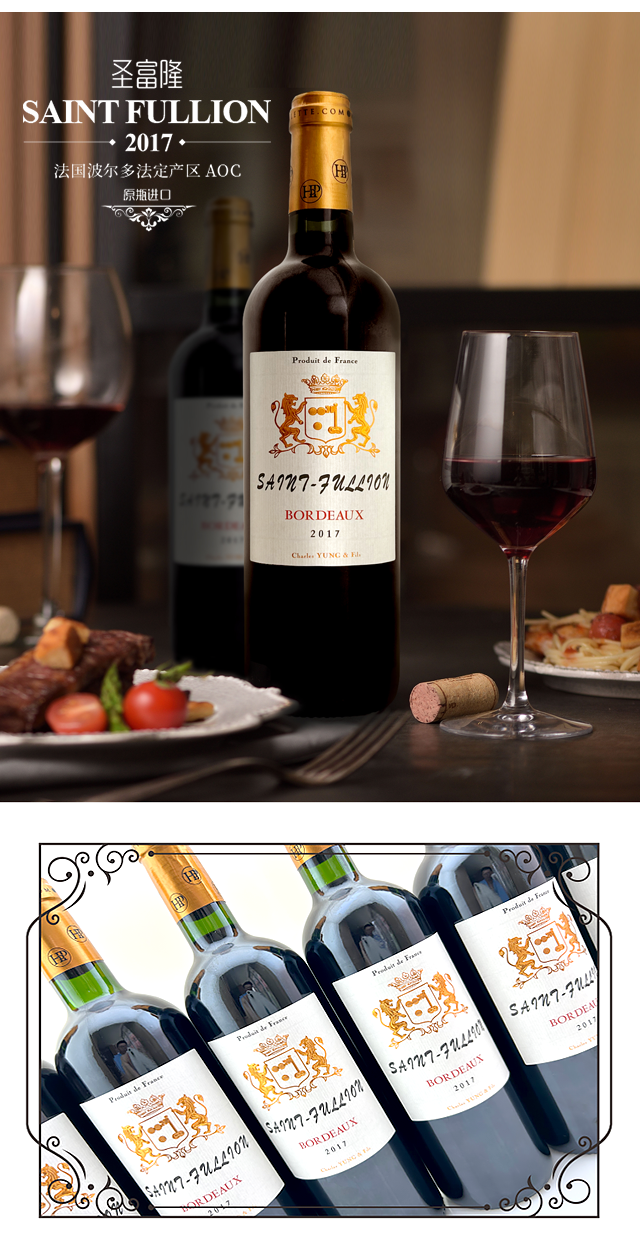 1箱6支包邮-法国波尔多法定产区AOC原瓶进口:圣富隆SAINT FULLION 2017